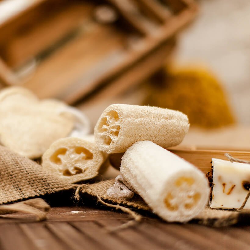 A luffa é uma planta trepadeira anual. A esponja é a parte interna fibrosa da fruta que pode ser usada quando seca, sendo completamente compostável.