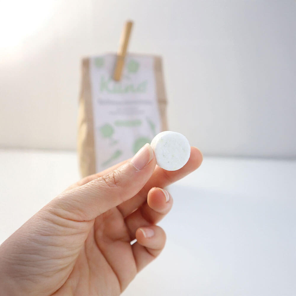 Mini Pastilhas para a máquina de lavar loiça com aroma a erva-príncipe fabricadas a partir de produtos naturais. Estas pastilhas caracterizam-se pelo seu tamanho compacto e excelente poder de limpeza. Ao contrário das pastilhas convencionais, as Mini Pastilhas Kuno não contêm filme de PVA e são embaladas de forma sustentável em papel kraft.