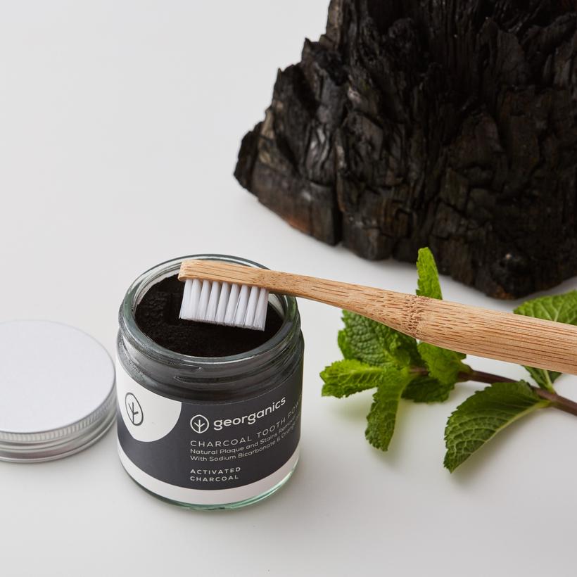 Pó Dentário Natural Carvão Ativado livre de ingredientes tóxicos, o pó irá absorver e remover a placa bacteriana e manchas dos dentes.